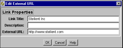 | Building a Web Site > Web Layout Editor Application > Creating an External URL Link | |